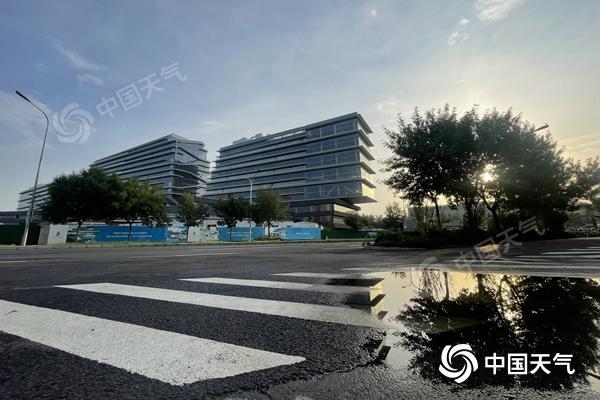 今晨,北京部分路面仍有积水。(图/中国天气网 王晓)