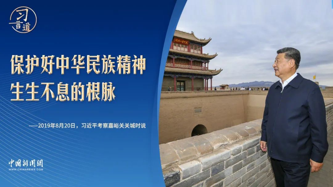 “当今世界,人们提起中国,就会想起万里长城;提起中华文明,也会想起万里长城。长城、长江、黄河等都是中华民族的重要象征,是中华民族精神的重要标志。我们一定要重视历史文化保护传承,保护好中华民族精神生生不息的根脉。”