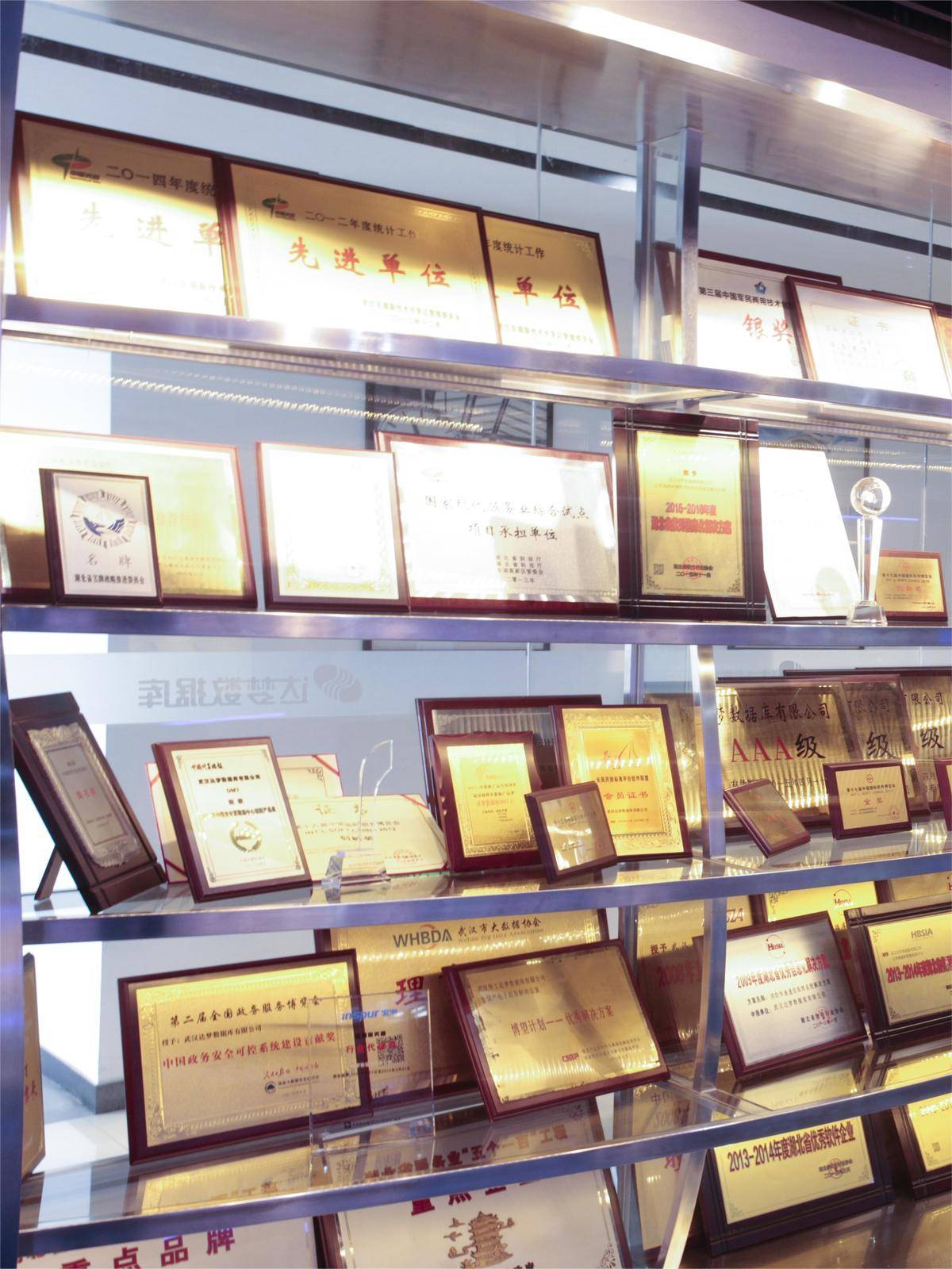 达梦数据厅部分荣誉展示。(湖北日报全媒记者 刘洁 实习生 张逸云)