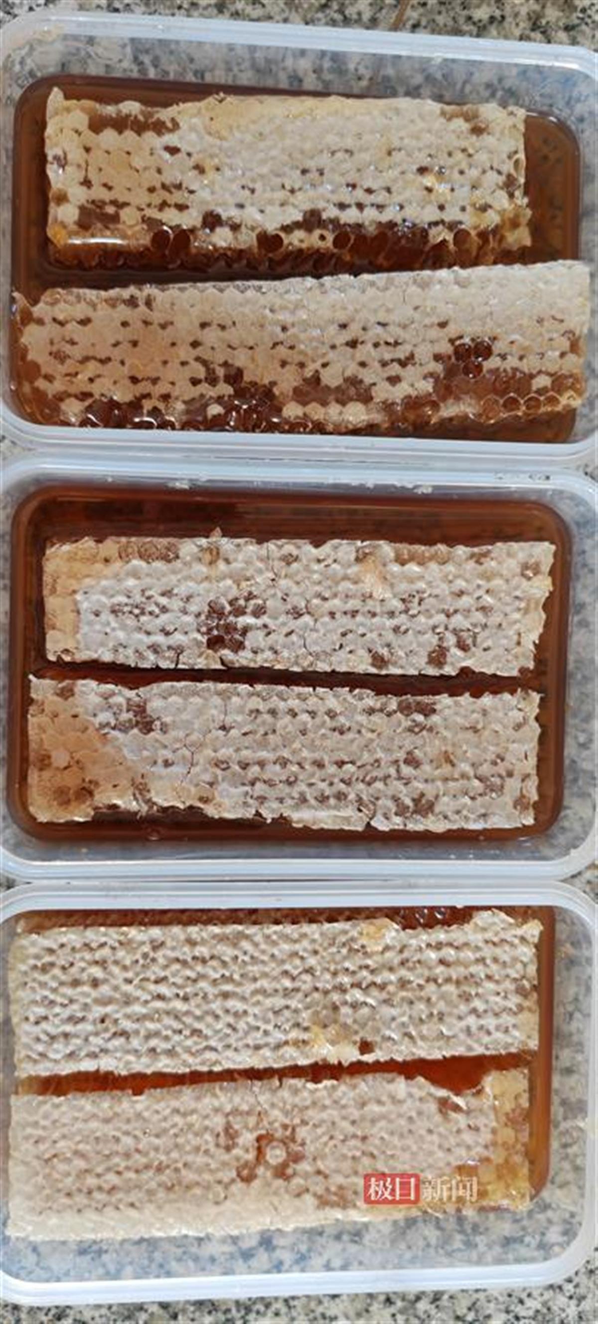 “这种天然成熟的蜂蜜也叫封盖蜜,波美度达到了43度,每公斤能卖到100元。”张高明拿出一盒固体的蜂蜜告诉极目新闻记者,一般“水蜜”波美度只有38度,一个星期左右就可以收割,但他为了保证蜂蜜的品质,需要等到蜂蜜自然成熟后,蜜蜂用蜡将蜂蜜封住后才收割,这个过程长达20天左右。