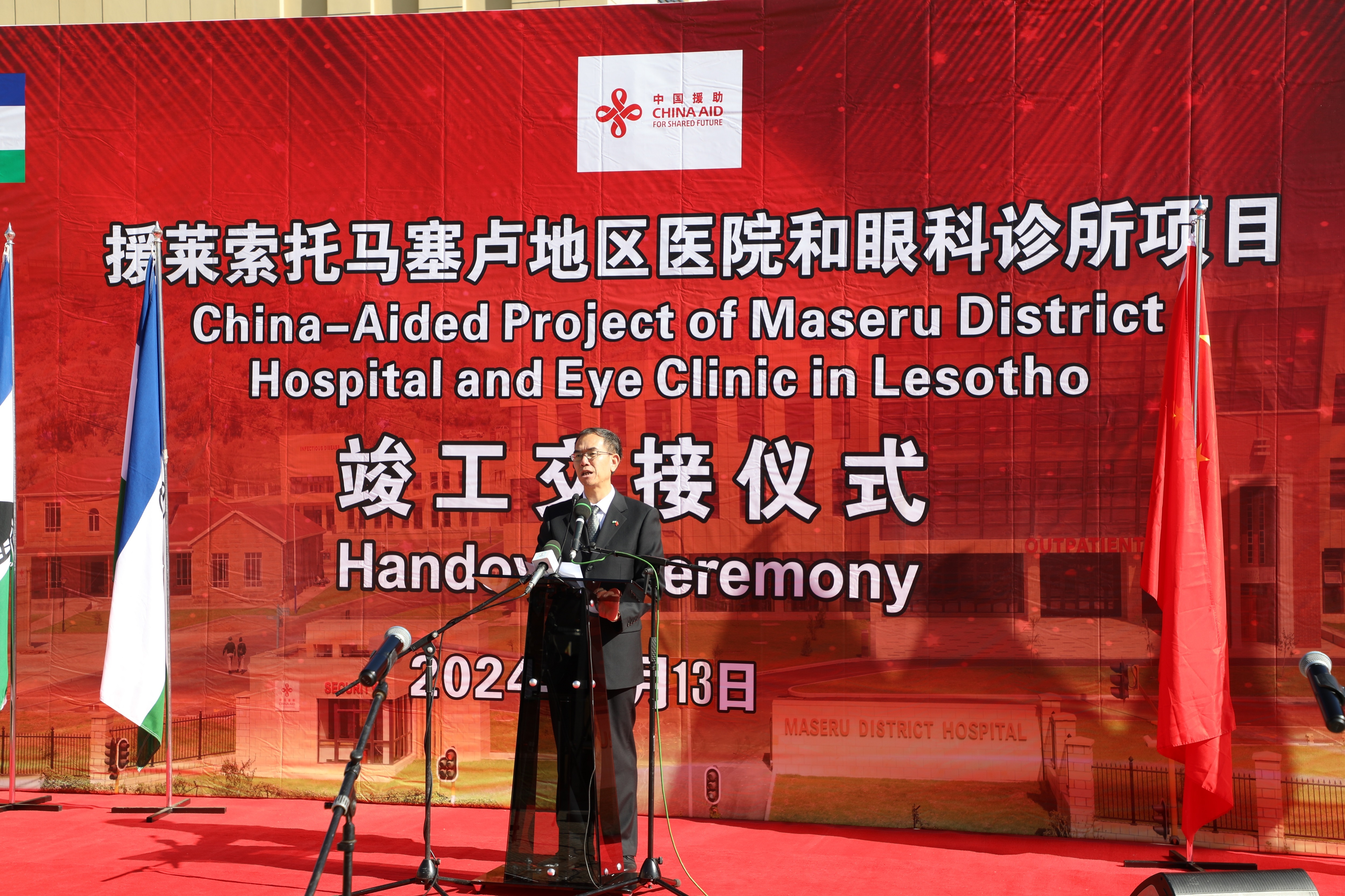 当地时间6月13日,中国援建莱索托马塞卢地区医院和眼科诊所项目竣工交接仪式在莱索托首都马塞卢举行。
