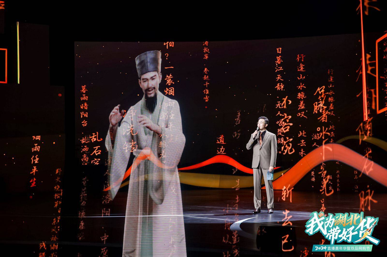 “荆楚多珍宝,时时出好货。碧涛千里浪,青山映柔波。巧手织汉绣,匠心制佳作。风味传千里,湖北名远播。”活动现场,北宋文豪苏东坡以数字人的形象惊艳亮相,化身“带货王”,在微信朋友圈写下一首《水调歌头·好货时时有》,赞叹荆楚大地物产丰饶,推荐湖北美景好物。
