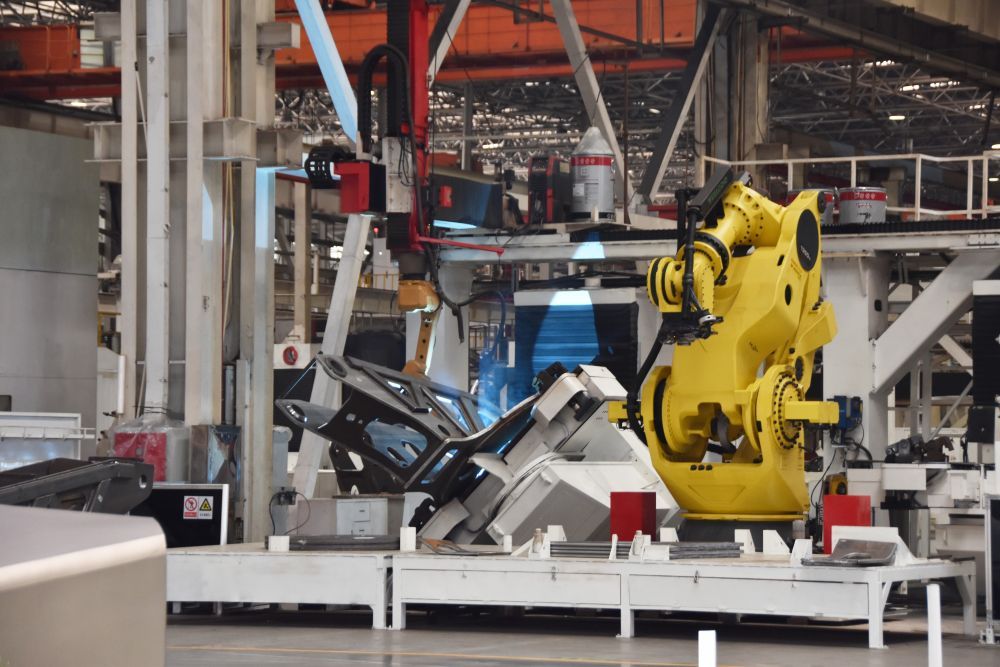 2024年5月22日,位于湖南长沙的三一重工18号工厂内机械臂在进行无人化焊接作业。新华社记者 白田田 摄