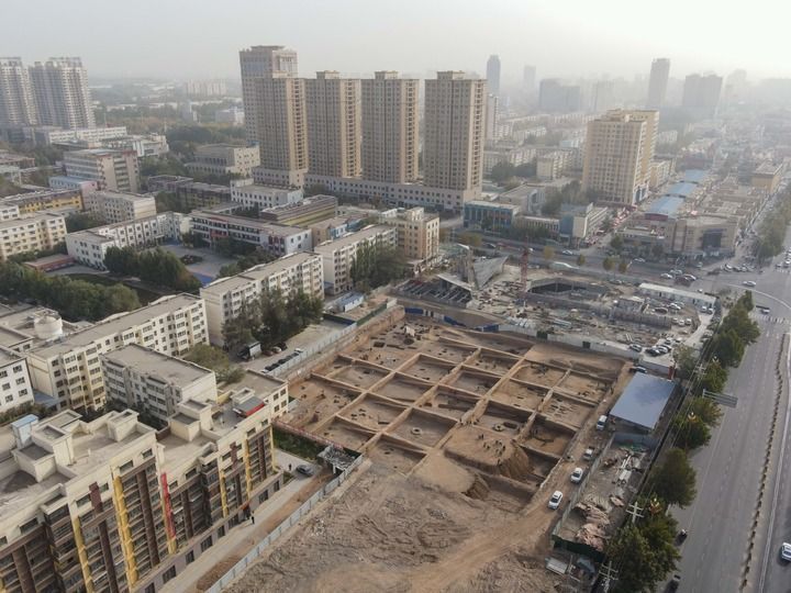 新疆库车市拍摄的库车友谊路砖室墓群发掘现场(2023年10月18日摄)。