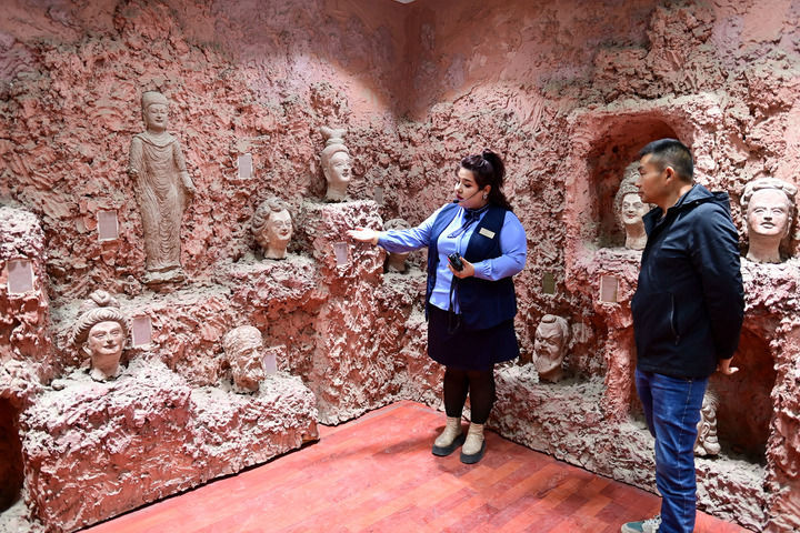 “博物馆充分发挥珍贵历史文化遗产作用,再现晋十六国时期古龟兹地区文化习俗和生活风貌,有形有感地向人们介绍多元文化交往交流交融的历史。”库车市龟兹博物馆副馆长曹兴伟说。