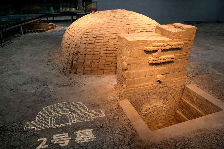 新疆库车市龟兹魏晋古墓遗址博物馆拍摄的2号墓(2023年9月9日摄)。