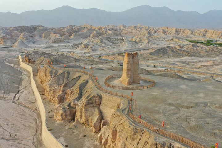 新疆库车市拍摄的克孜尔尕哈烽燧(2023年9月8日摄)。