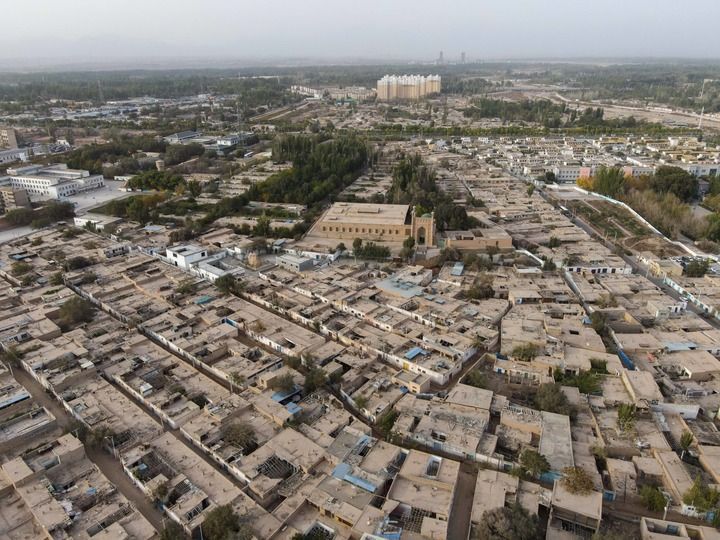 新疆库车市老城拍摄的库车大寺及周边民居(2023年10月19日摄)。本组图片均由新华社记者 丁磊 摄