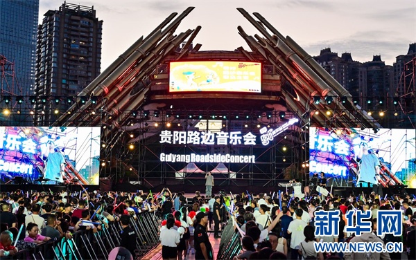 6月14日,作为贵阳马拉松赛预热活动之一的“贵马之夜”路边音乐会在筑城广场举行。新华网发(主办方供图)