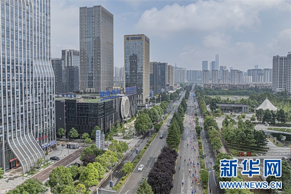 6月16日,选手们在贵阳马拉松赛道上奔跑。新华网发(主办方供图)