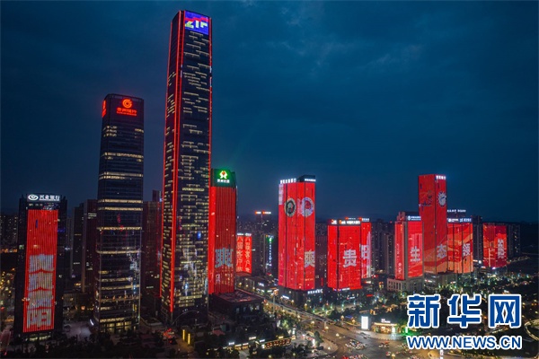 位于贵阳马拉松赛起终点的灯光秀。新华网发(主办方供图)