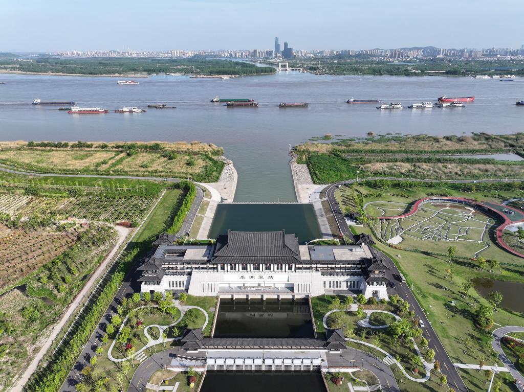 位于扬州邗江区瓜洲镇的瓜洲泵站(无人机照片,2024年4月24日摄)。新华社记者 季春鹏 摄