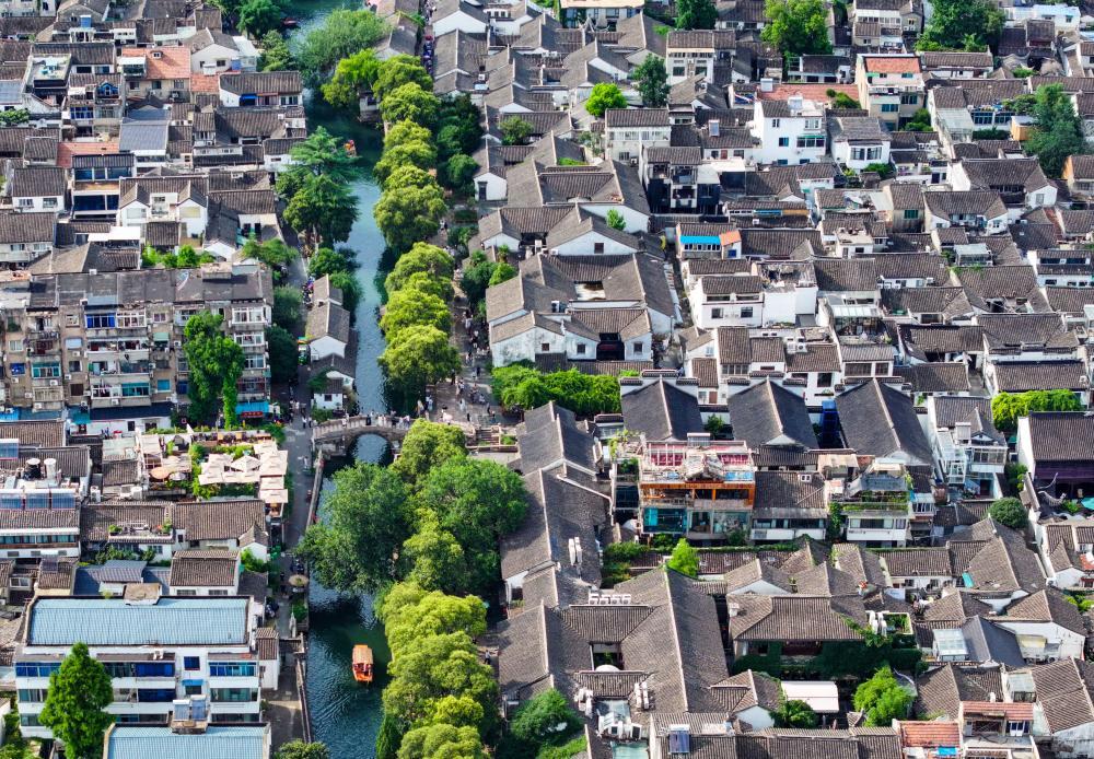 2023年7月3日拍摄的苏州平江历史文化街区(无人机照片)。 新华社记者 李博 摄