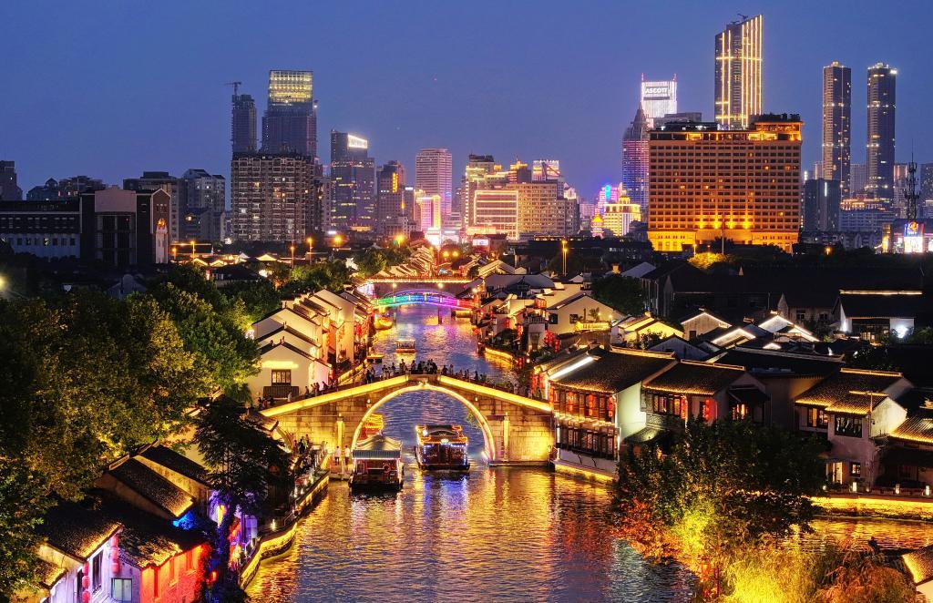 人们乘坐画舫穿梭在桨声灯影里