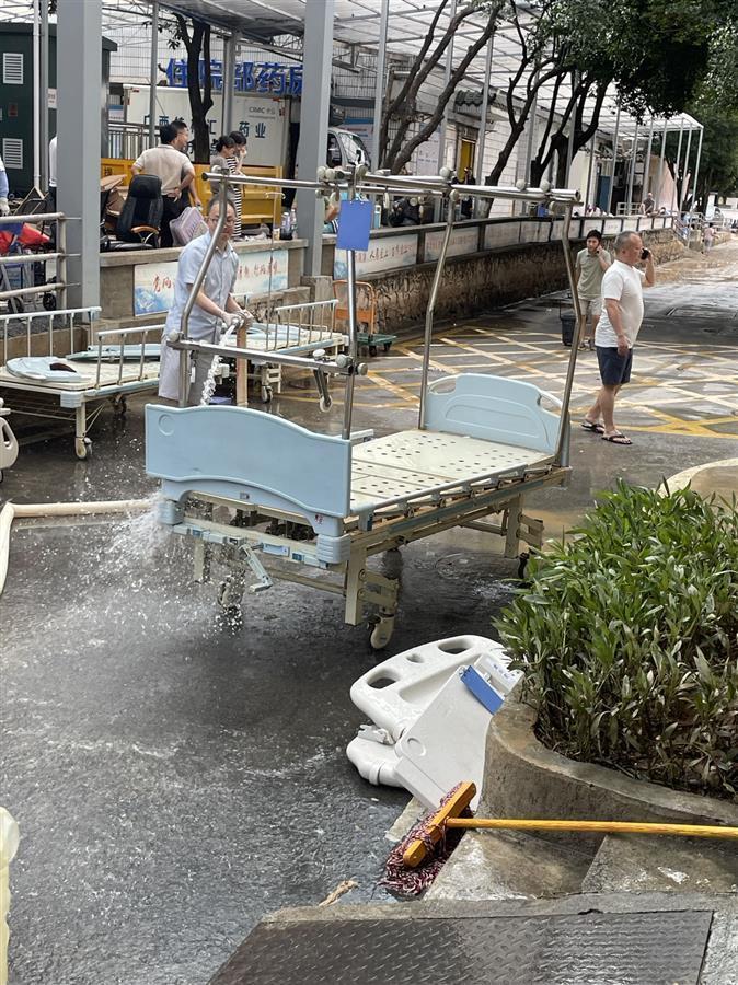 “最深的时候,水都到胸口了。”南溪山医院住院部一位保安回忆,19日当天,他看着水从5号楼门口起来。本以为是一场普通的暴雨,没想到不到半小时,水就进了台阶,涌入住院部。