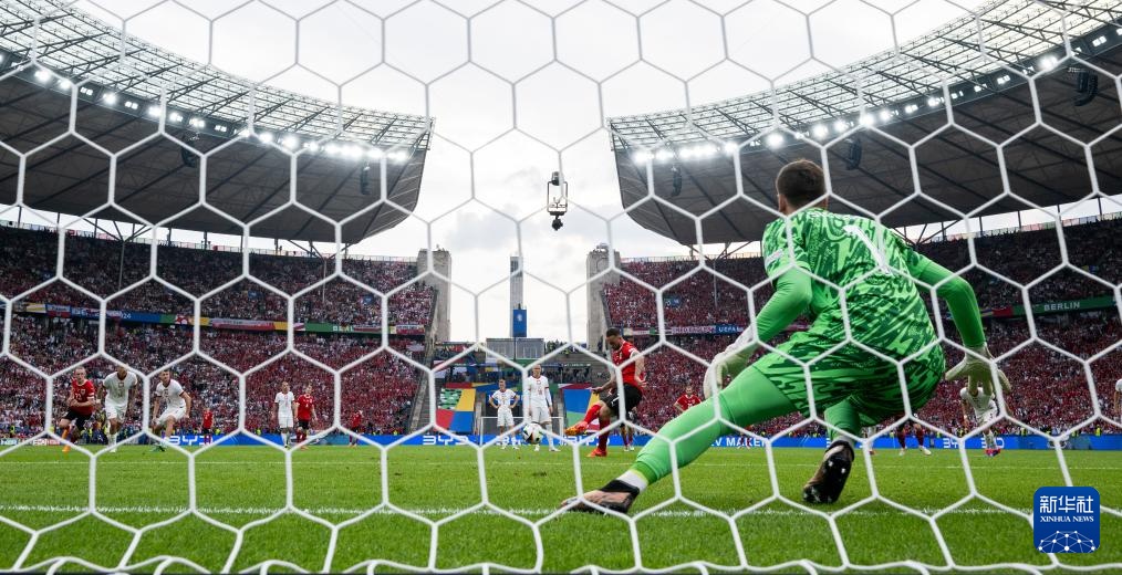 6月21日,奥地利队球员马尔科·阿尔诺托维奇主罚点球命中。新华社记者 肖艺九 摄