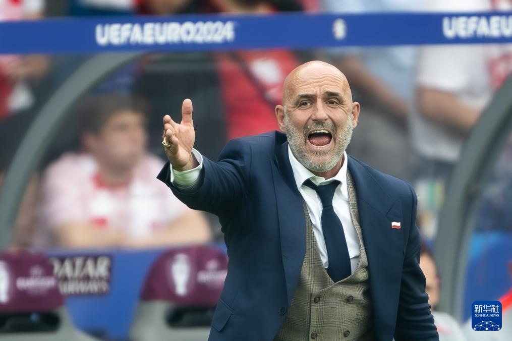 6月21日,波兰队主教练普罗比尔兹在场边指挥。新华社记者 肖艺九 摄