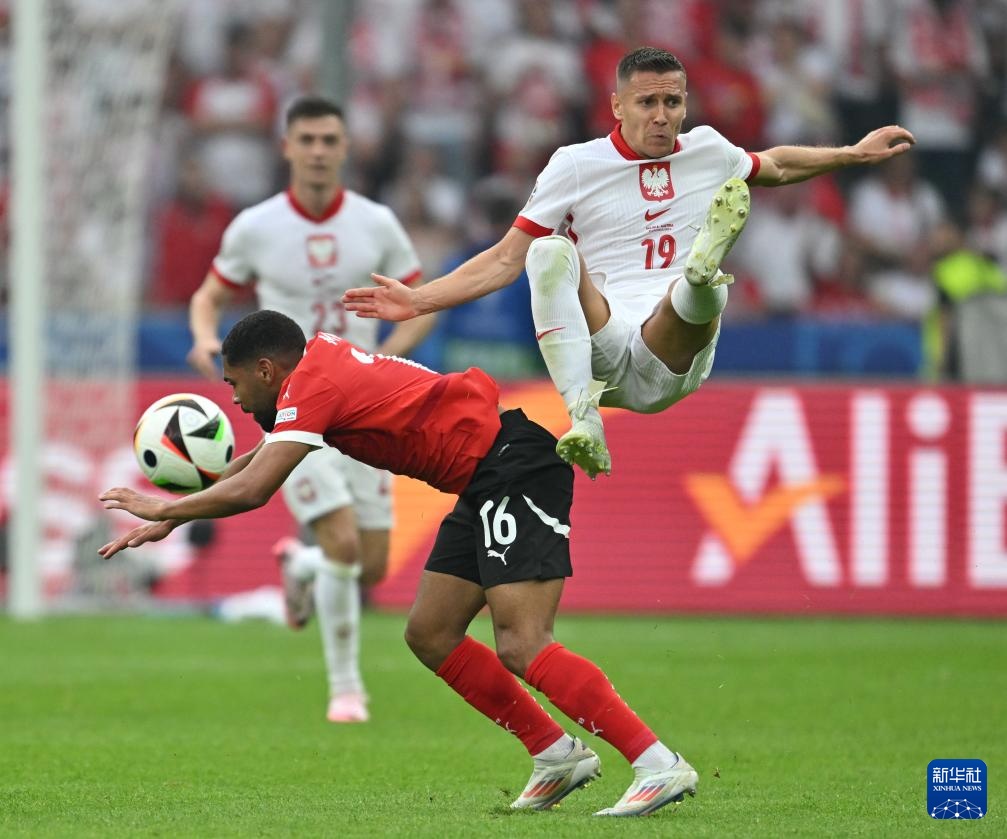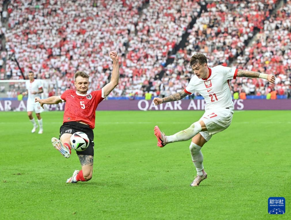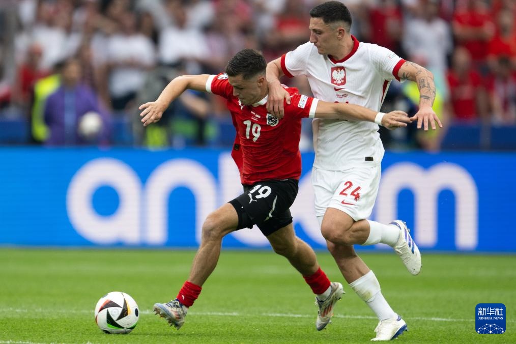 当日,在德国柏林进行的2024年欧洲足球锦标赛小组赛D组第二轮比赛中,奥地利队3比1战胜波兰队。