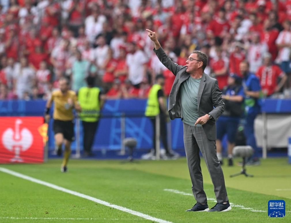6月21日,奥地利队主教练拉尔夫·朗尼克在场边指挥。新华社记者 任鹏飞 摄