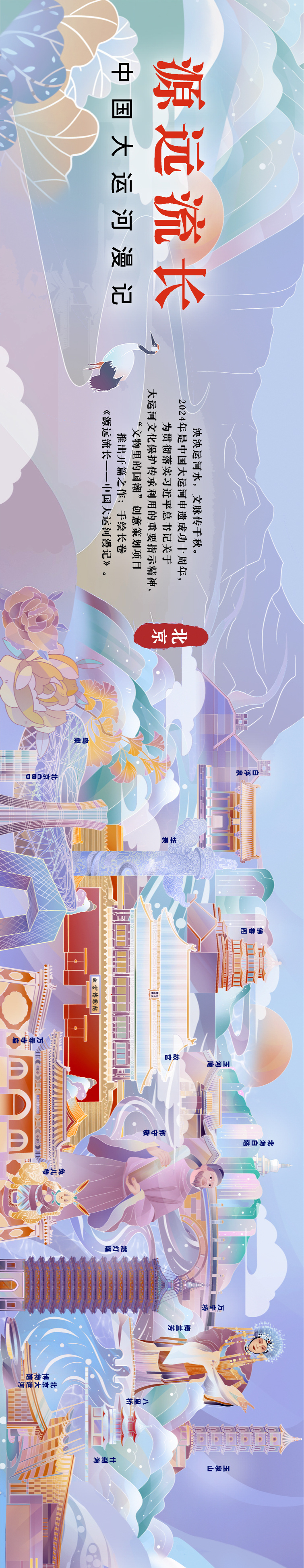 泱泱运河水,文脉传千秋。2024年是中国大运河申遗成功十周年,为贯彻落实习近平总书记关于大运河文化保护传承利用的重要指示精神,“文物里的国潮”创意策划项目推出开篇之作:手绘长卷《源远流长——中国大运河漫记》。