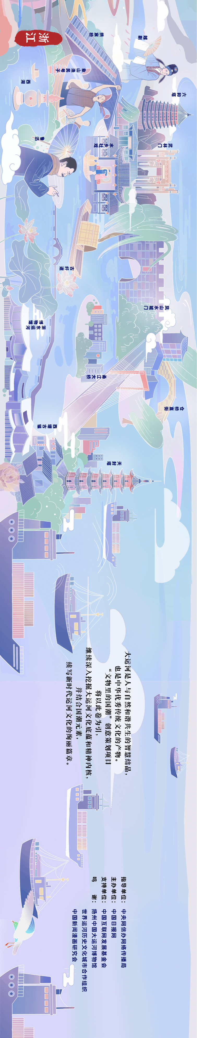 大运河是人与自然和谐共生的智慧结晶,也是中华优秀传统文化的产物。“文物里的国潮”创意策划项目将以此卷为引,继续深入挖掘大运河文化底蕴和精神内核,并结合国潮元素,续写新时代运河文化的绚丽篇章。