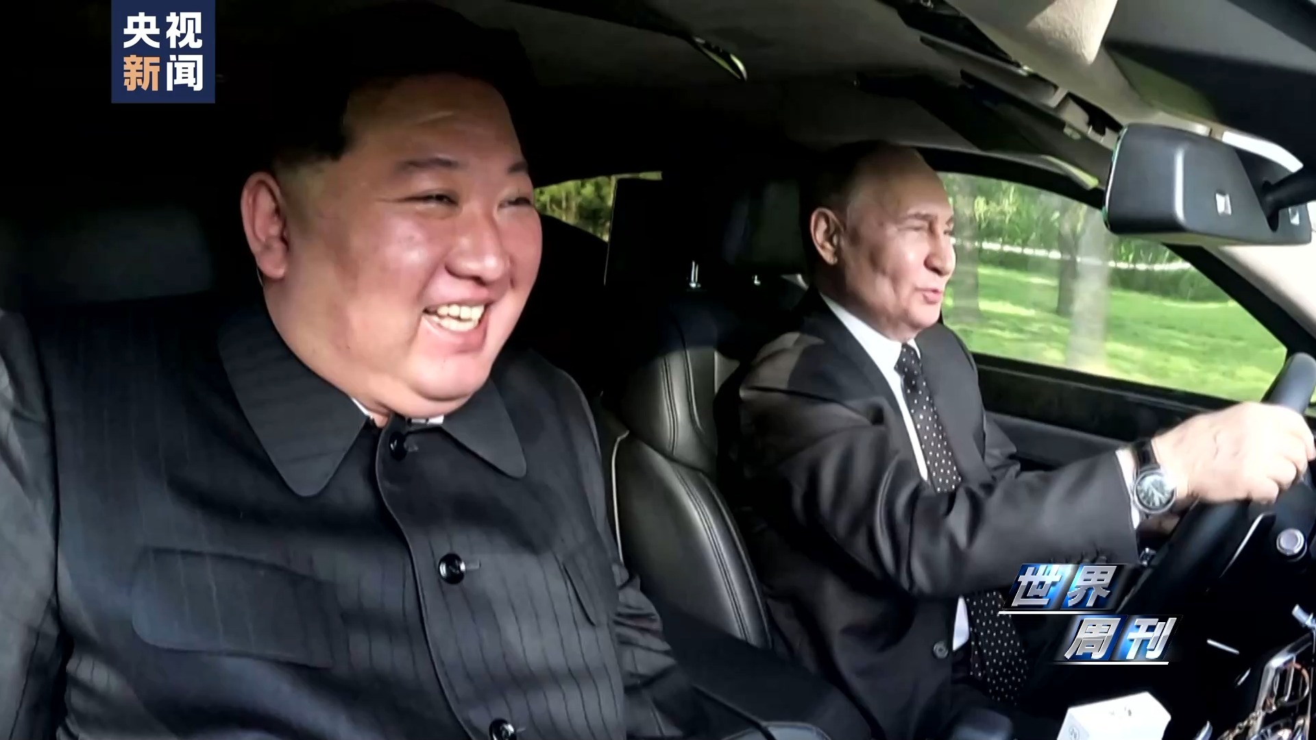 6月19日,俄罗斯总统普京开着俄罗斯国产的“奥鲁斯”轿车,载着朝鲜最高领导人金正恩在平壤街头兜风。