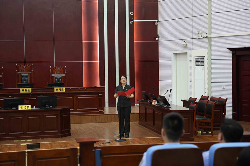 图为集中宣判结束后黄石中院法官“以案释法”。