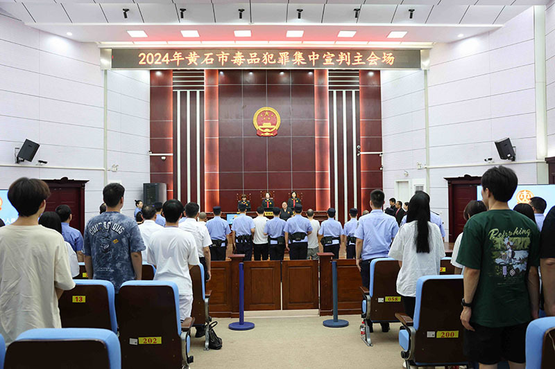 6月24日,国际禁毒日来临之际,湖北省黄石市中级人民法院组织市区两级法院对6起10人的毒品犯罪案件进行集中公开宣判。