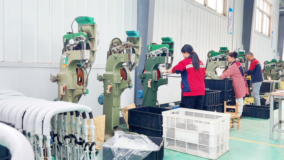在天资儿童用品生产车间,各种型号的童车车轮加速下线。天资儿童用品于2023年10月落户,由于天资儿童用品主要是给尚丽童车做产业配套,为按时完成订单,公司急切找到厂房投入生产。