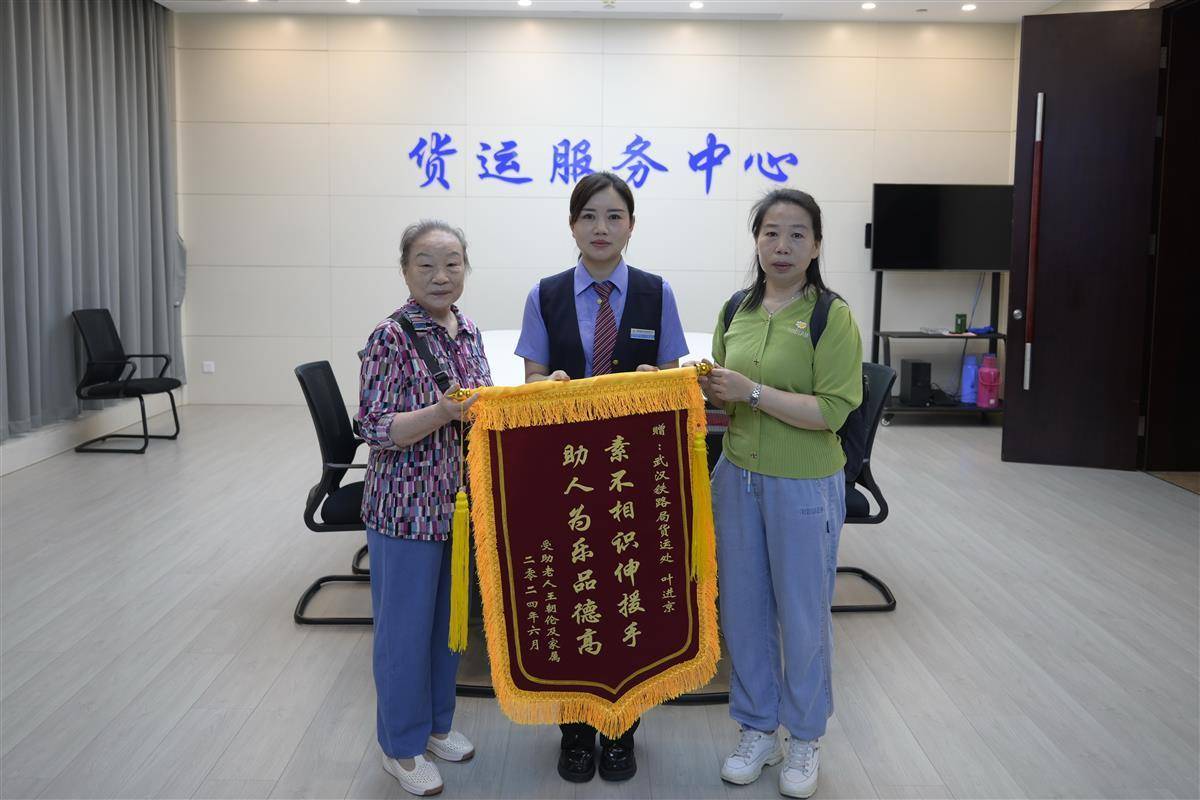 “太感谢你了,毫不犹豫伸出援手,救助了我们的家人。”6月24日,81岁的刘春娥老人在女儿的陪伴下来到中国铁路武汉局集团有限公司(下称“武铁”)95306货运物流服务中心,拉着货运集中办理工作人员叶进京的手激动地说,并为她送上一面印有“素不相识伸援手,助人为乐品德高”的锦旗。