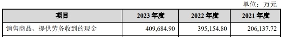 以上同期,公司销售商品、提供劳务收到的现金分别为97,008.46万元、206,137.72万元、395,154.80万元、409,684.90万元。