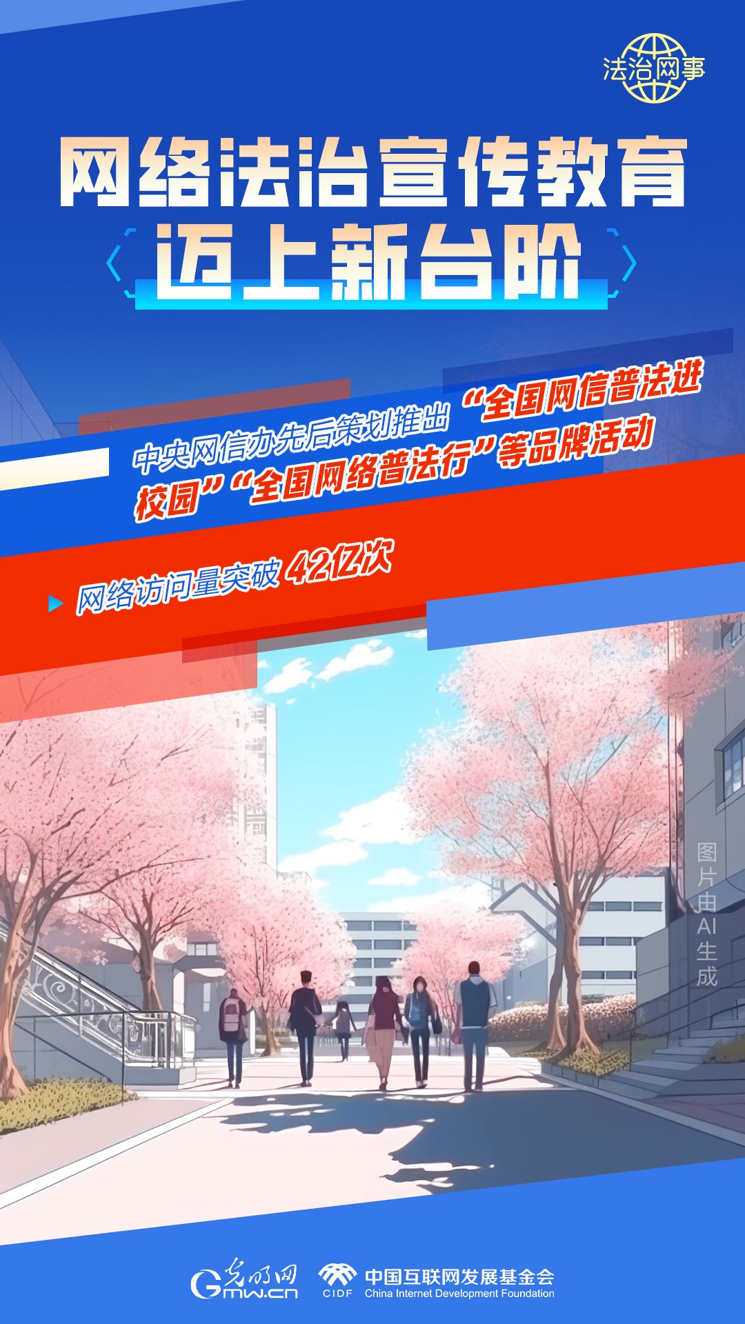 中央网信办先后策划推出“全国网信普法进校园”“全国网络普法行”等品牌活动,网络访问量突破42亿次。