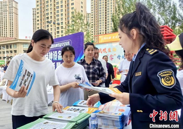 图为市场监管部门工作人员发放特种设备安全宣传资料。祁增蓓 摄