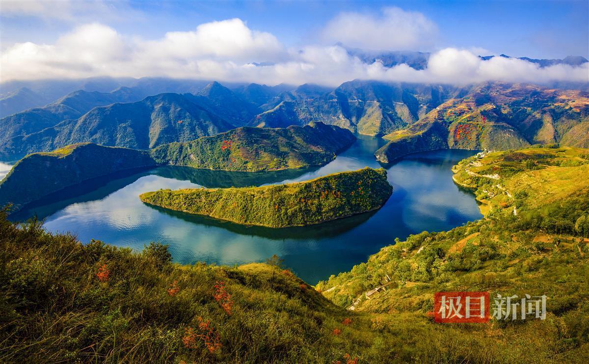 郧西县六郎乡金钱湖碧水映蓝天(来源:郧轩文摄)
