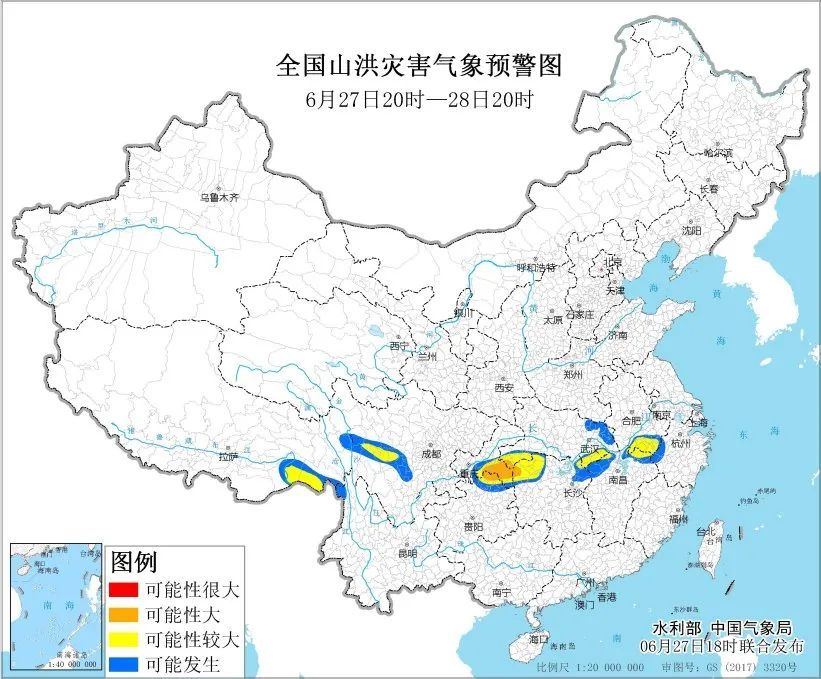 水利部和中国气象局27日18时联合发布橙色山洪灾害气象预警:预计,27日20时至28日20时,浙江西部、安徽南部、江西北部、湖北南部、湖南北部、四川西部、重庆南部、贵州北部、西藏东南部等地部分地区发生山洪灾害可能性较大(黄色预警),其中,湖北西南部、湖南西北部、重庆南部、贵州北部等地部分地区发生山洪灾害可能性大(橙色预警)。