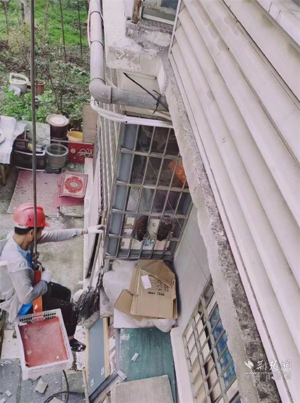 与此同时,今年年初,伟业佳苑各楼栋不同程度出现外墙、顶层等部位风化开裂情况,严重危及楼下居民和行人人身安全。社区对此高度重视,及时组建外墙脱落安全问题整治工作专班,在充分讨论改造进程中的重难点问题后,最终决定以“居民自排+物业公司急排+专业队伍统排”相结合的方式,启动小区7个楼栋排危项目,4月下旬全小区的300余处排危工作顺利完成。