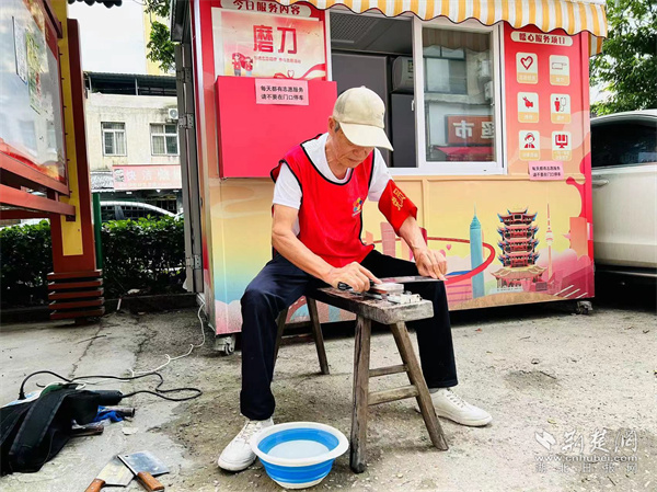 志愿者在小屋前为居民提供免费便民服务。 通讯员供图