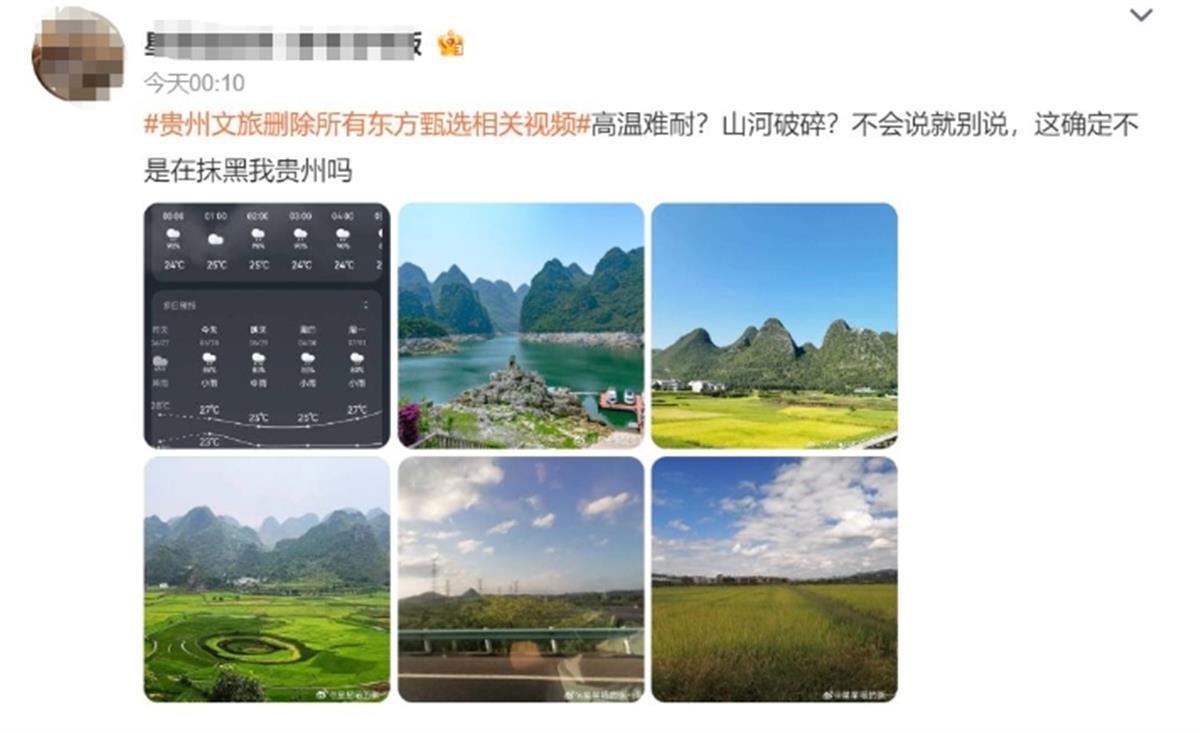 6月22日,东方甄选应贵州文旅之邀,来到贵州省肇兴侗寨开展文旅活动。然而,在直播当天,东方甄选主播用“山河破碎”一词来形容贵州地貌,这一言论引发热议。随后,有网友注意到,贵州文旅已经删除了所有东方甄选的相关视频。