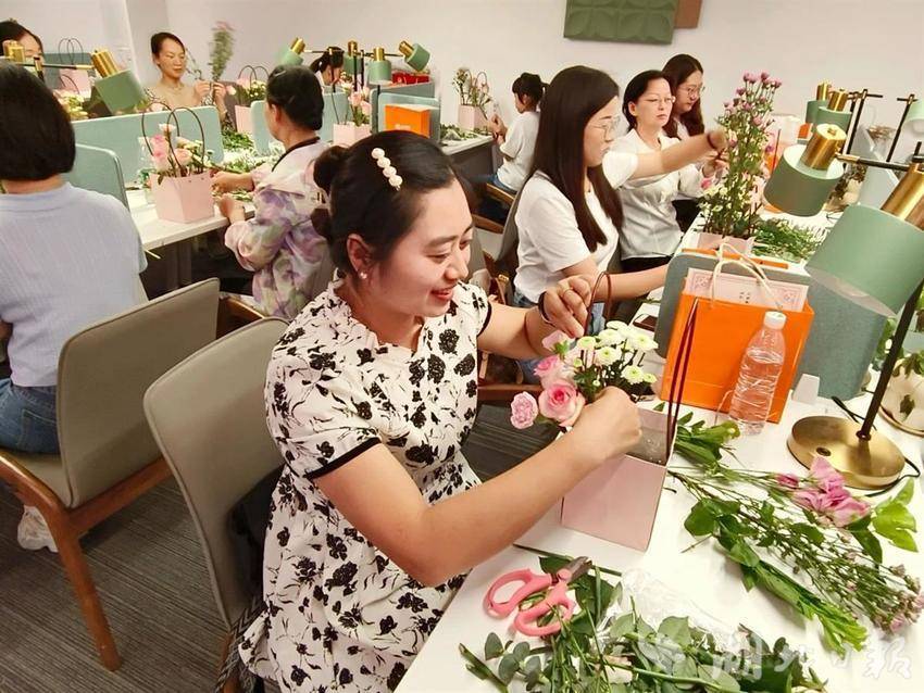当天,还组织了“‘赋能·她力量’关爱女性成长”插花活动,来自市妇女儿童活动中心的插花老师为大家讲解了插花要领,进一步丰富了大家的精神生活、陶冶了情操。