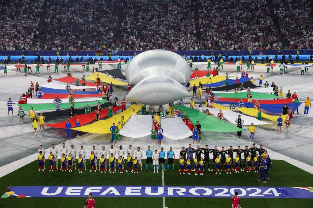 6月14日,欧锦赛小组赛A组首轮比赛,双方球员(前)在比赛前。新华社记者 张帆 摄