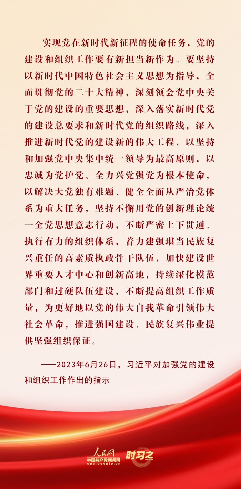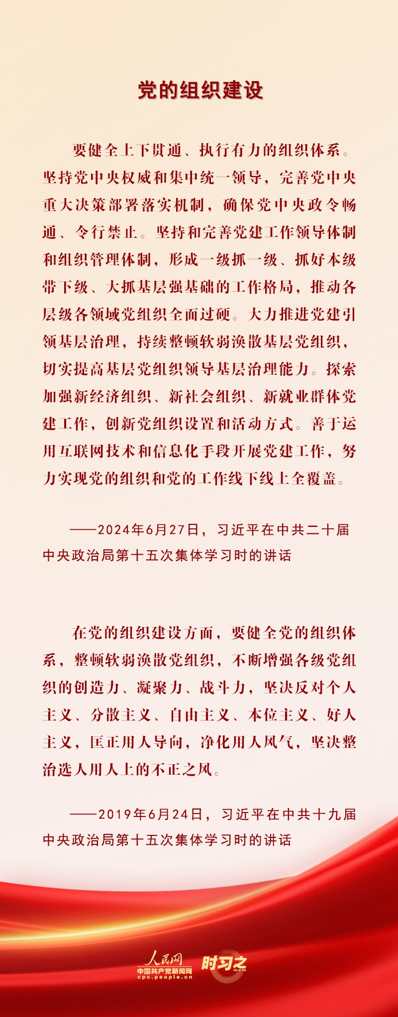 党和人民事业发展到什么阶段,党的建设和组织工作就要推进到什么阶段。习近平总书记提出,要全面推进党的政治建设、思想建设、组织建设、作风建设、纪律建设,把制度建设贯穿其中,深入推进反腐败斗争,不断提高党的建设质量,把党建设成为始终走在时代前列、人民衷心拥护、勇于自我革命、经得起各种风浪考验、朝气蓬勃的马克思主义执政党。