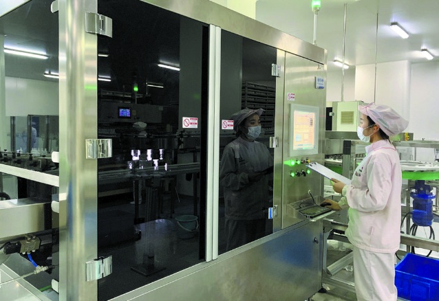 石家庄四药积极对标国际一流标准,应用信息化技术,引进智能化全自动灯检机等先进设备,大幅提升了生产效率和产品质量,降低了能耗和各项成本。记者 张震 摄