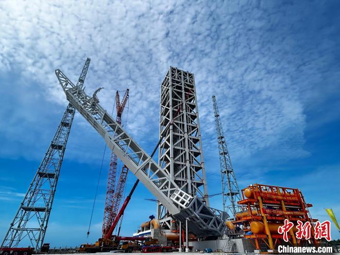 6月30日,中国首个商业航天发射场——海南商业航天发射场首次进行双工位合练。图为二号发射工位进行模拟箭“起竖”演示。中新社记者 符宇群 摄