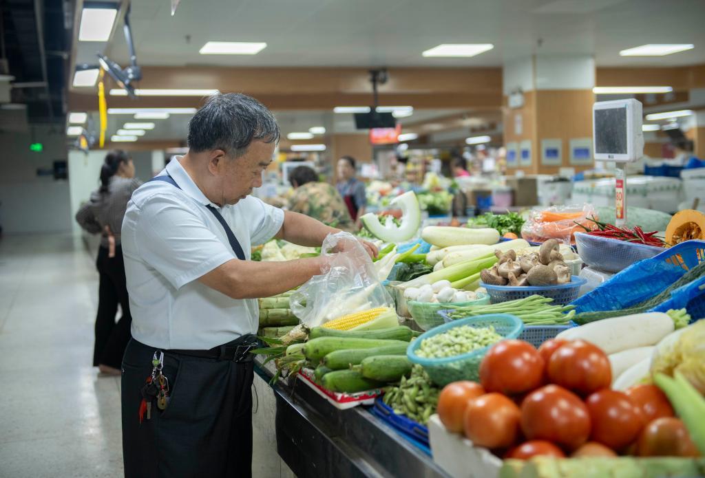 6月28日,市民在黄山市屯溪区阜上邻里中心菜市场选购蔬菜。新华社记者傅天 摄