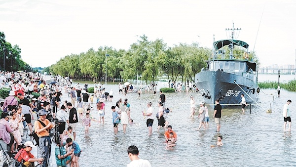 不少市民到汉口江滩公园玩水 摄影:楚天都市报极目新闻记者李辉
