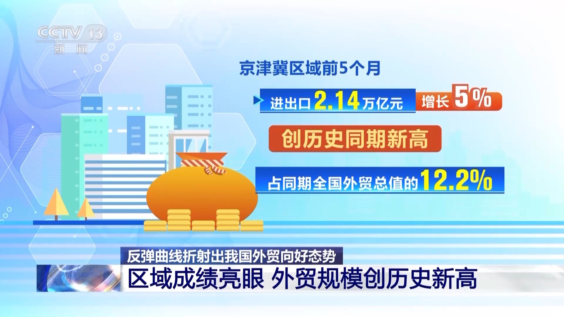 京津冀区域前5个月进出口2.14万亿元,增长5%,创历史同期新高,占同期全国外贸总值的12.2%。其中,北京地区在京津冀区域外贸的占比为72.8%,上拉区域外贸增速3.2个百分点,“火车头”作用进一步凸显。