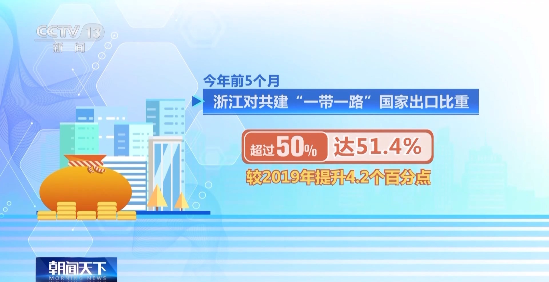 今年前5个月,浙江对共建“一带一路”国家出口比重超过50%,达51.4%,较2019年提升4.2个百分点。其中,对东盟、拉美、非洲、中东欧等市场出口比重均有显著提升。