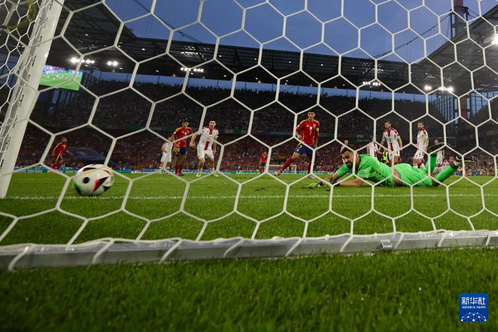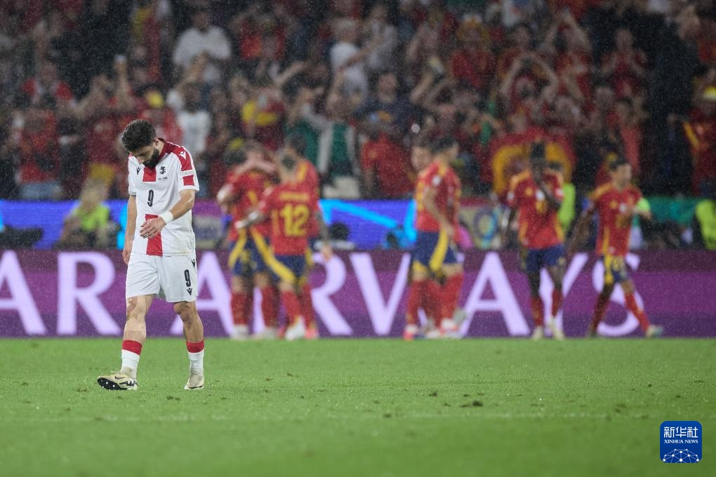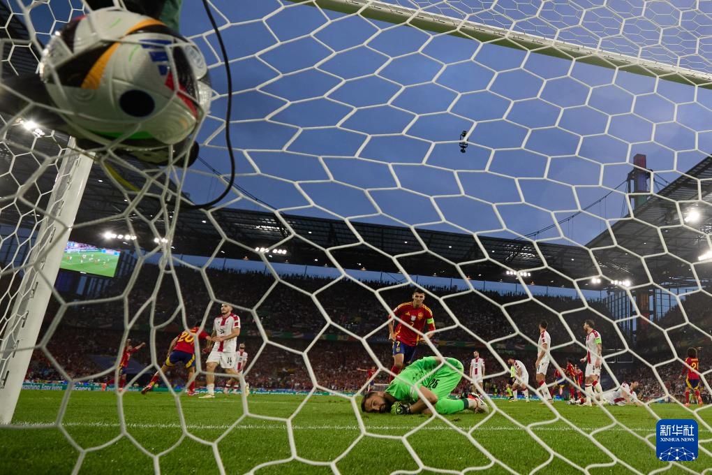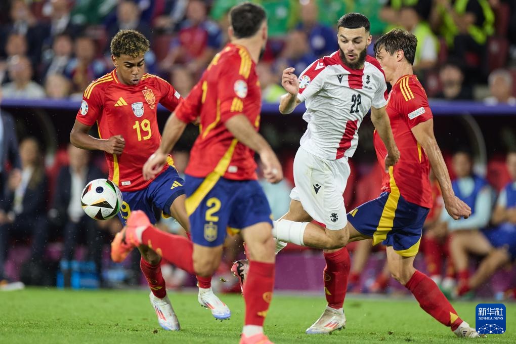 当日,在德国科隆进行的2024欧洲足球锦标赛八分之一决赛中,西班牙队4比1战胜格鲁吉亚队,晋级八强。