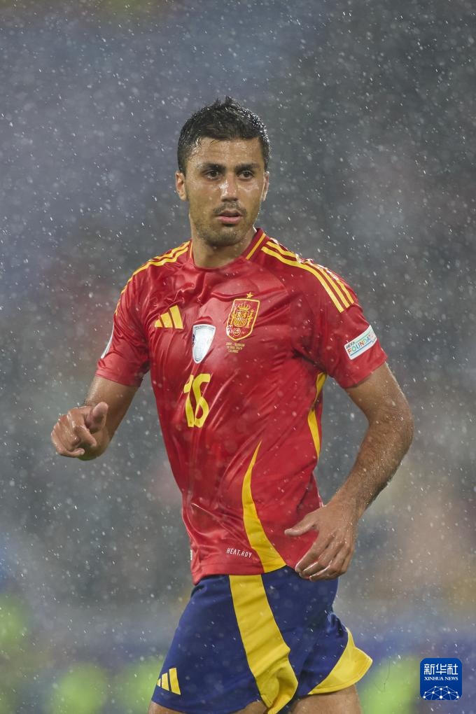 6月30日,西班牙队球员罗德里在比赛中。新华社记者 孟鼎博 摄
