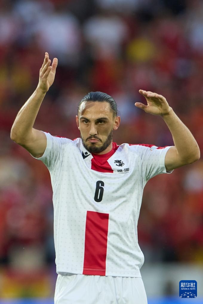 6月30日,格鲁吉亚队球员乔治·科乔拉什维利在比赛中。新华社记者 孟鼎博 摄